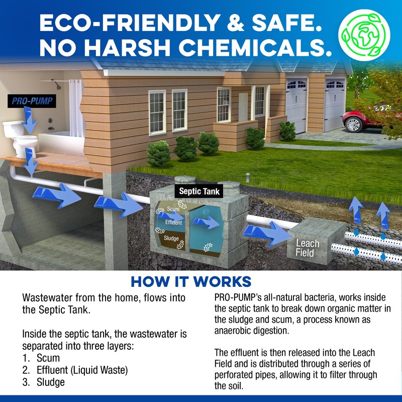 • REDUCED PUMPING TIME: PRO-PUMP actively breaks down solid waste, significantly reducing pump-out time; This saves time and keeps your septic system working efficiently