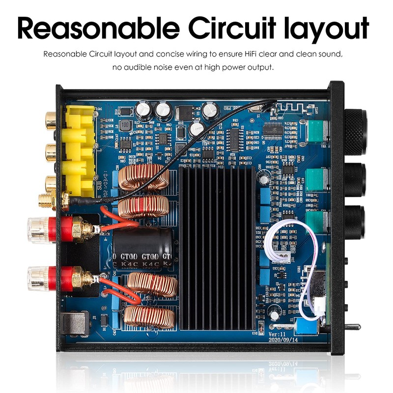 - Reasonable circuit layout and concise wiring to ensure HiFi clear and clean sound, no audible noise even at high power output. High gain Bluetooth antenna design, can receive audio signals from greater distance, very practical and powerful.