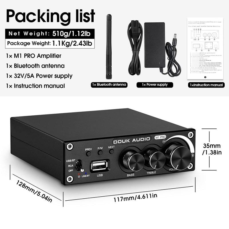- M1 PRO supports stereo RCA and Bluetooth 5.0 input, compatible with phones, computers, TVs, MP3 players, TV, Echo Dot, CD players etc. It is also a digital music player with U-disk input supporting MP3, WAV, APE, FLAC and WMA lossless formats.