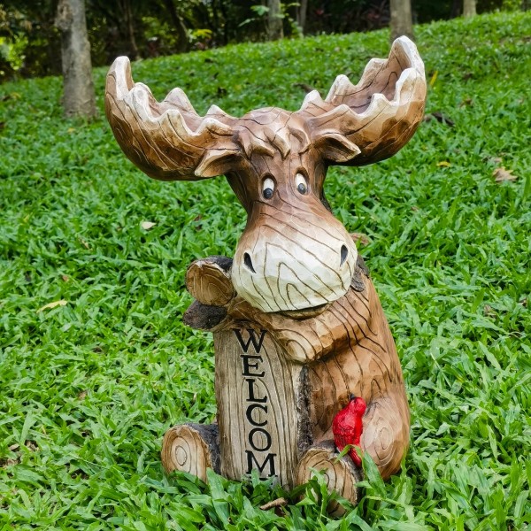 Hi-Line Gift Ltd. Moose With Cardinal Garden Welcome Sign Resin Statue Yard Decor