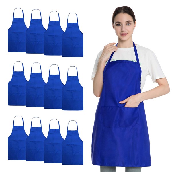 Hi loyaya 12 Pack Blue Aprons for Women Adult Ladies with Pockets, Waterproof Grilling Painting Baking BBQ Cooking Kitchen Bib Aprons Bulk (12, Blue)