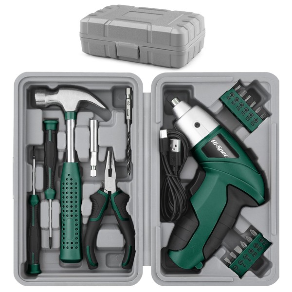 Hi-Spec 3.6V Cordless Electric Screwdriver Set with Interchangeable Bits, Green