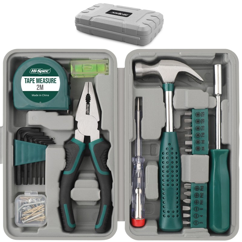 - Measure and Test: 2 m retractable tape measure for rooms and spaces; a voltage pen for safely testing household electrical outlets; a mini spirit level to get shelves and frames straight