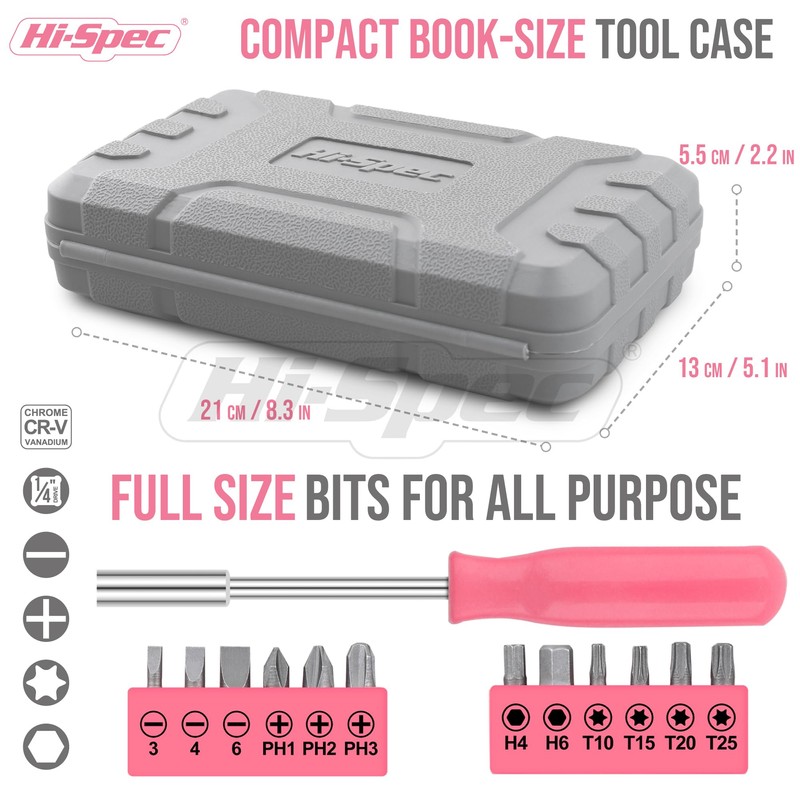 Hi-Spec Tool Set 25pc Pink Household DIY Tool Kit for Women. Small Mini Tool Box Set of Starter Basic Ladies Tools - ACE YOUR DIY PROJECTS: Equip yourself with the essential tool kit set designed for first homes, new apartments, and dorm rooms; tackle everyday tasks and complete simple repairs, emergency fixes, basic maintenance, and weekend chores with ease - DO IT HERSELF TOOLKIT: Take care of your living space by using this comprehensive collection of durable steel hand tools including a compact hammer, featuring non-slip handles for comfortable grip and precision during screwdriving, hammering, installation, and assembly tasks - SMALL & PORTABLE: Store your hand tools in a book-sized toolbox that keeps everything organized and easily accessible; just grab and go, tackling tasks wherever they arise, ensuring you're always prepared for any home or office challenge - VERSATILE TOOL SET IDEA: Delight the handy woman or girl, householders, students, and homeowners in your life with a thoughtful and practical gift they'll be reaching for in their daily DIY endeavors -PINK TOOL BOX: With a selection of colors, choose a set that meets your needs with an all-purpose selection of easy-to-use basic tools for enhancing modern living spaces as simply as possible