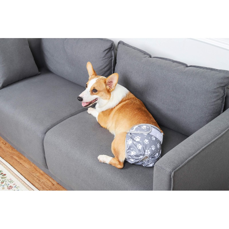 Hi Sprout Female Dog Diaper Reusable Washable Durable Absorbent Cloth Doggie Diapers Pants (M, Grey Footprint)