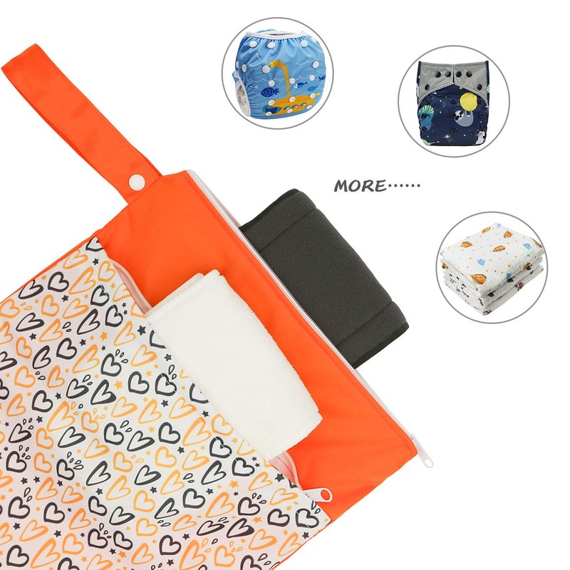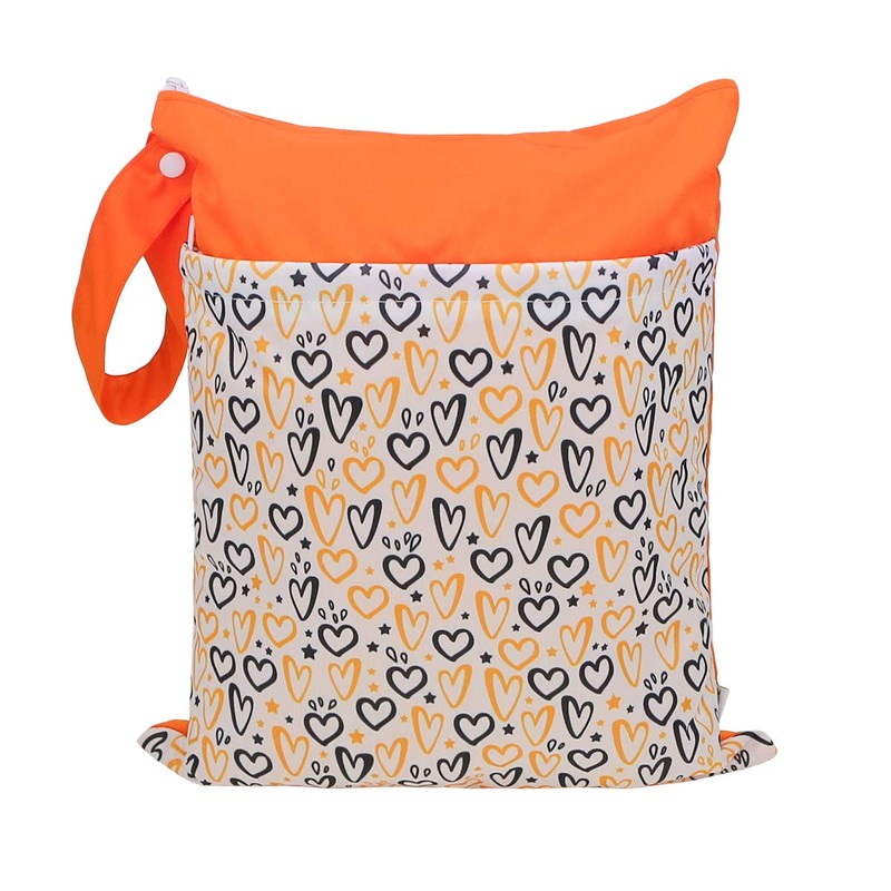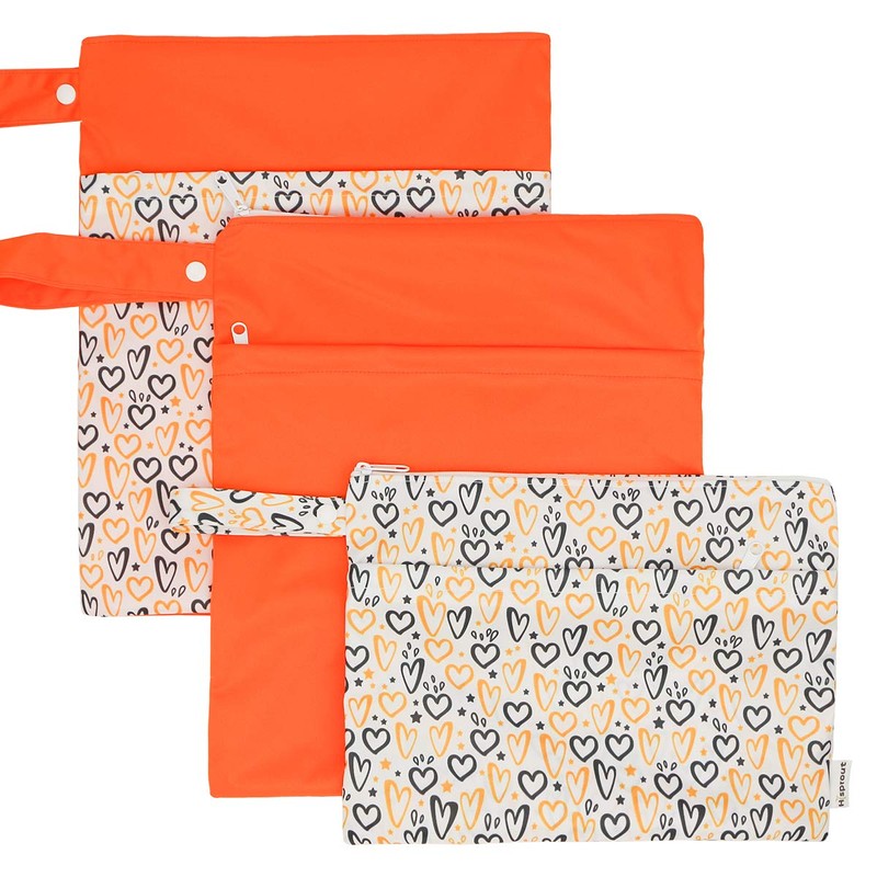 Hi Sprout Grab and Go Wet Dry Cloth Diaper Bags -Waterproof Washable Reusable Diaper Organizer (simple bag, Heart Shake)