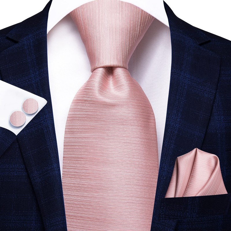 Hi-Tie Men 63inches Tie Set Extra Long Necktie Paisley Tie Pocket Suqare Cufflinks Big and Tall Men Tie,Blush Pink