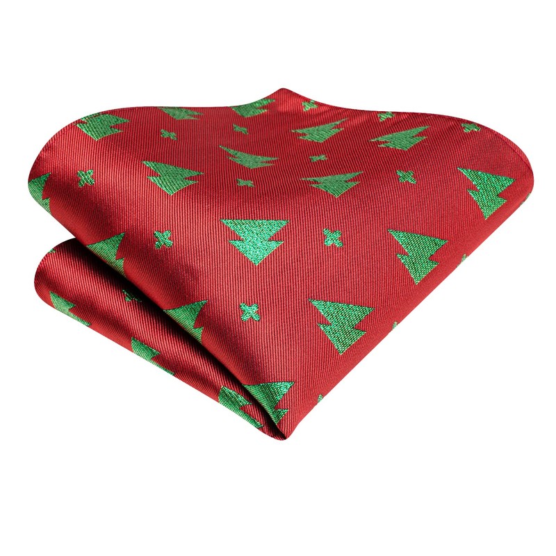 Hi-Tie Men's Christmas Tie Set Tie Pocket Square Cufflinks Set Match Reindeer Snowflake Xmas Tree Pattern for Wedding Prom, red green christmas tree