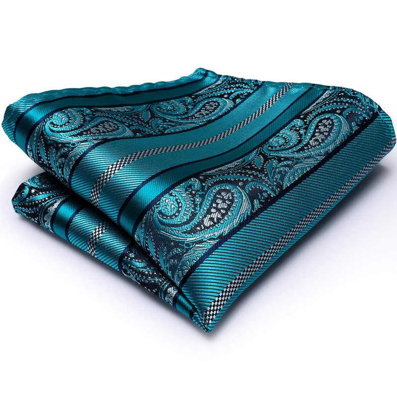 Hi-Tie Men's Solid Colour Tie Handkerchief Wedding Party Classic Tie & Pocket Square Set Multiple, Teal Stirpe