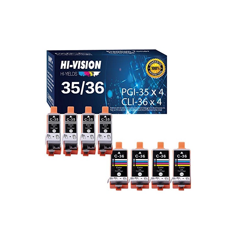 HI-Vision Compatible PGI-35+CLI-36 Pigment Compatible (4-Pack) Black & (4-Pack) Tri Color Ink Cartridge Replacement for Pixma iP100, iP110