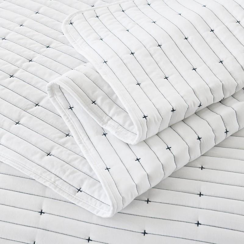 HIARUO Quilt Set Queen Size, 3 Pieces Bedspread Coverlet Comforter Set Lightweight Thin Bedding Blanket with 2 Pillow Covers Shams Modern Full Cover for All Season, White Star Pattern