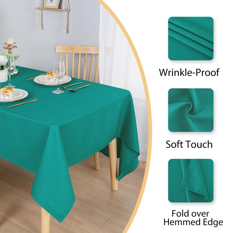 Hiasan 60 X 84 Inch Textured Rectangle Tablecloth - Waterproof Spillproof Wrinkle-Resistant Fabric Table Cloth for Kitchen and Dining Dinner, Outdoor Picnic, Holiday and Parties, Turquoise