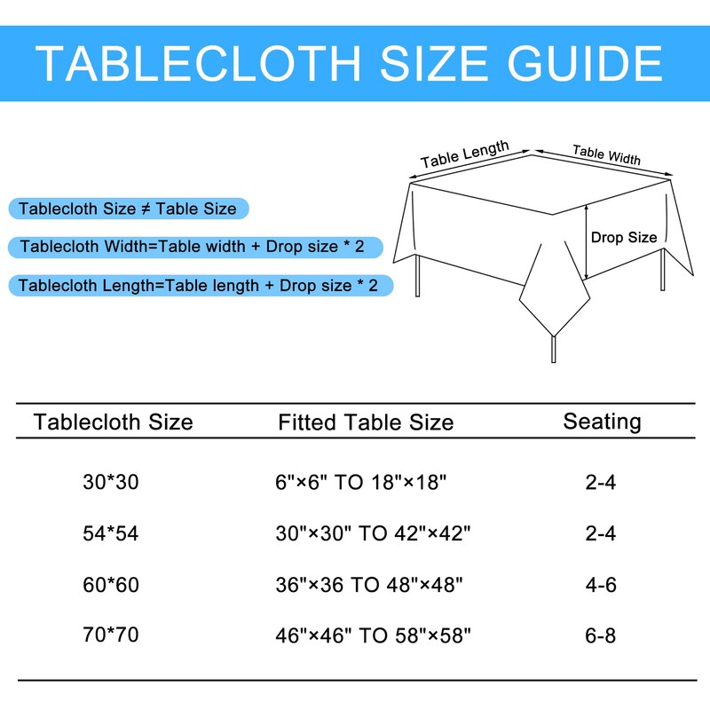 - Multipurpose Tablecloths: Our stain resistant table cover is suitable for every square table (Tea table, dining table, farm table and more). Create a relaxing and elegant setting on the table for dining atmosphere
