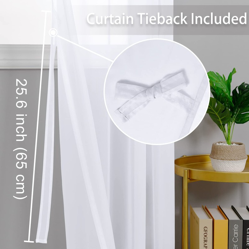 - Special Features: Unique design voile curtains with tiebacks sewn to both sides help you tie the curtains easily. These breathable sheer curtains can filter sunlight and balance the light level between indoor and outdoor. Providing sufficient light for your room while diffuse direct sunlight. It enables you to enjoy the beautiful scenery outside the window while providing you with certain privacy protection