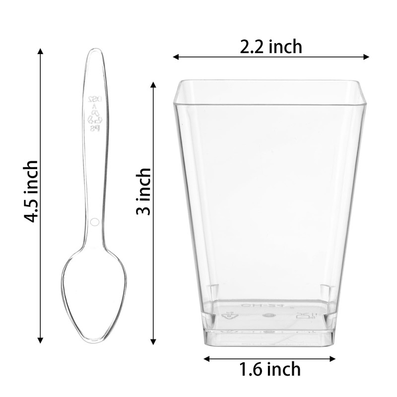 - 【Unique Design】: The classic square cup design makes the grip not easy to slip, also can be stacked for easy storage. The transparent cup body and eye-catching shape will make your desserts look more exquisite, and the artistic sense of elegance and charm is hard to resist.