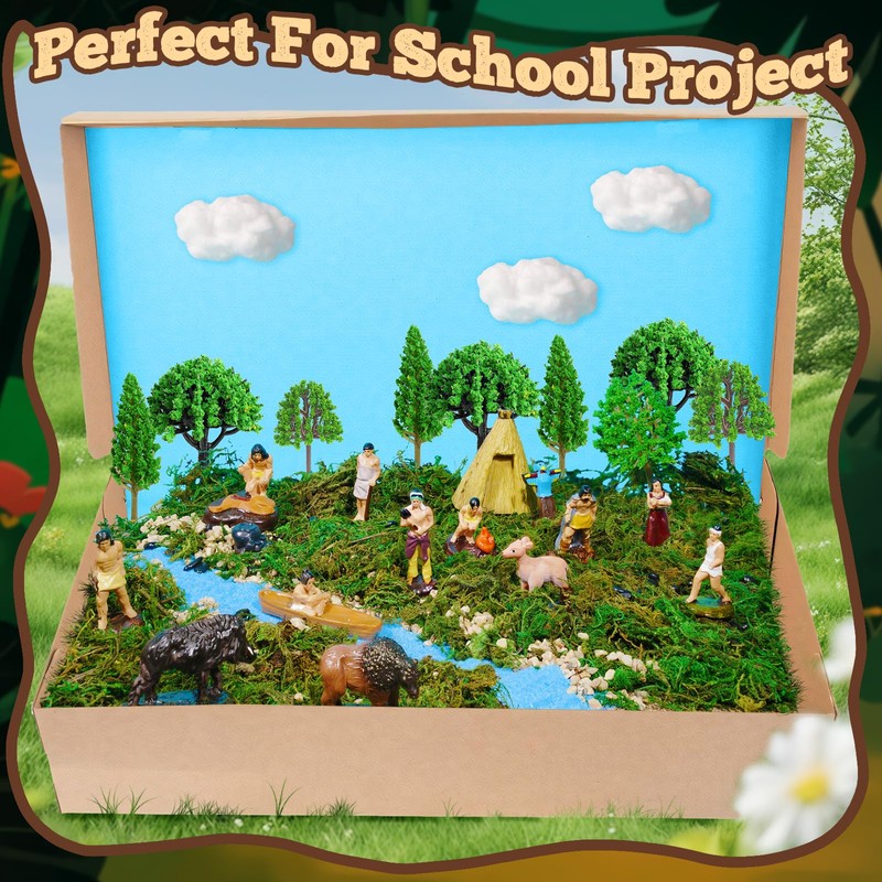 - Indian Model - Our indian diy model set includes a diverse set of Indian and animal figurines in various poses, complete with a picnic campfire and tent. blue fine sand, miniature trees and pebbles are included.