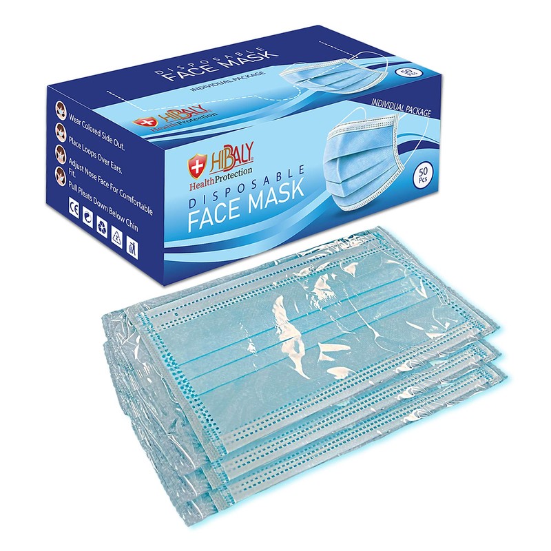 Hibaly | Sanitized Individually Packaged 3-ply Disposable Face Masks 50 pcs in Box