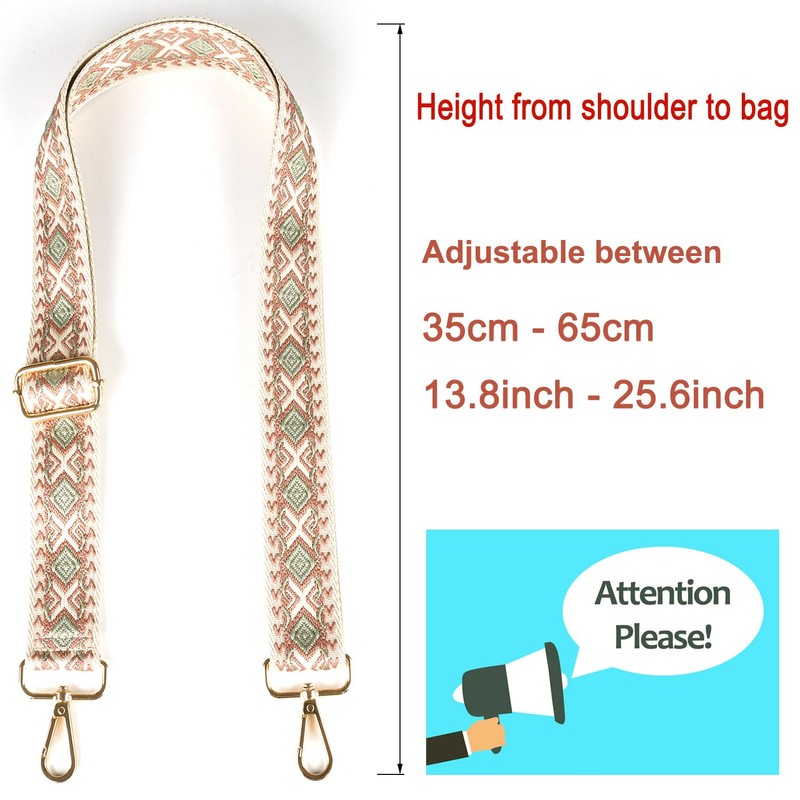 - Adjustable length: The length of the strap can be easily adjusted between 80cm to 140cm(32"-55"). It is fit for the hight from shoulder to bag is about 35cm to 65cm(13.8"-25.6"), making it suitable for customers of different heights and carrying preferences.