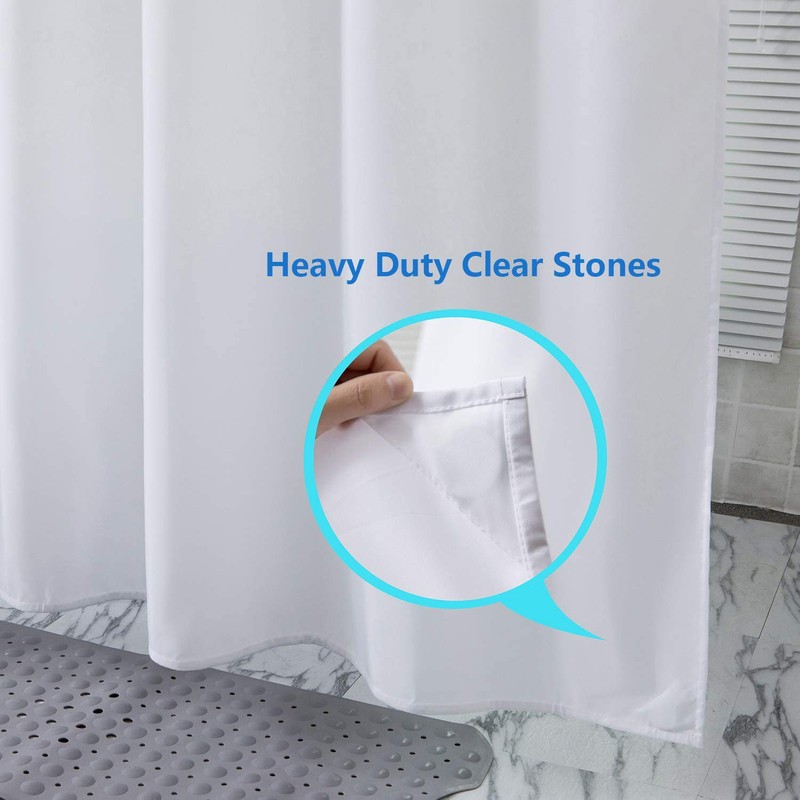 Hibate White (72x78 Inches) Fabric Shower Curtain Liners Hotel Quality Machine Washable Bath Bathroom w/12pcs Hooks
