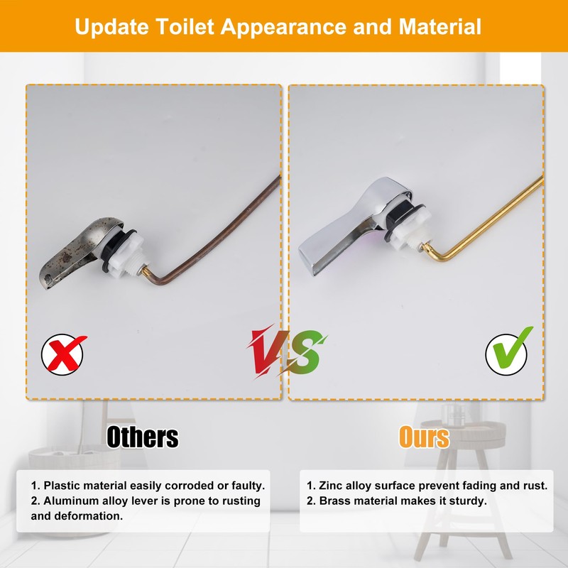 - Efficient Flushing: The toilet handle is great for kids, toddlers and elderly without having to apply too much pressure. From home powder rooms to commercial restrooms, it's a fancy and functional flusher. Replace your toilet handle with this universal flush lever. Say goodbye to sticky, broken and corroded handles.