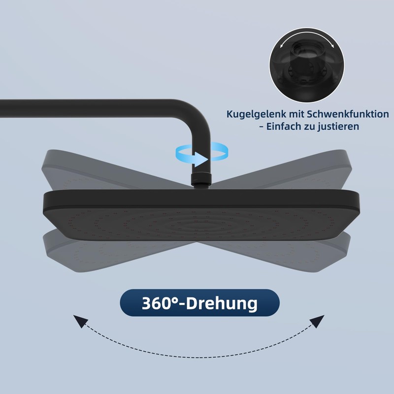 - [360°-Drehbare Messing-Drehkugelgelenk] Das robuste Messing-Drehkugelgelenk ermöglicht eine 360°-Drehung der Brause. Sie können die Richtung des Wasserstrahls 轻松 anpassen – perfekt für verschiedene Duschbedürfnisse, ob für ein entspanntes Kopfwaschen oder ein gründliches Duschen.