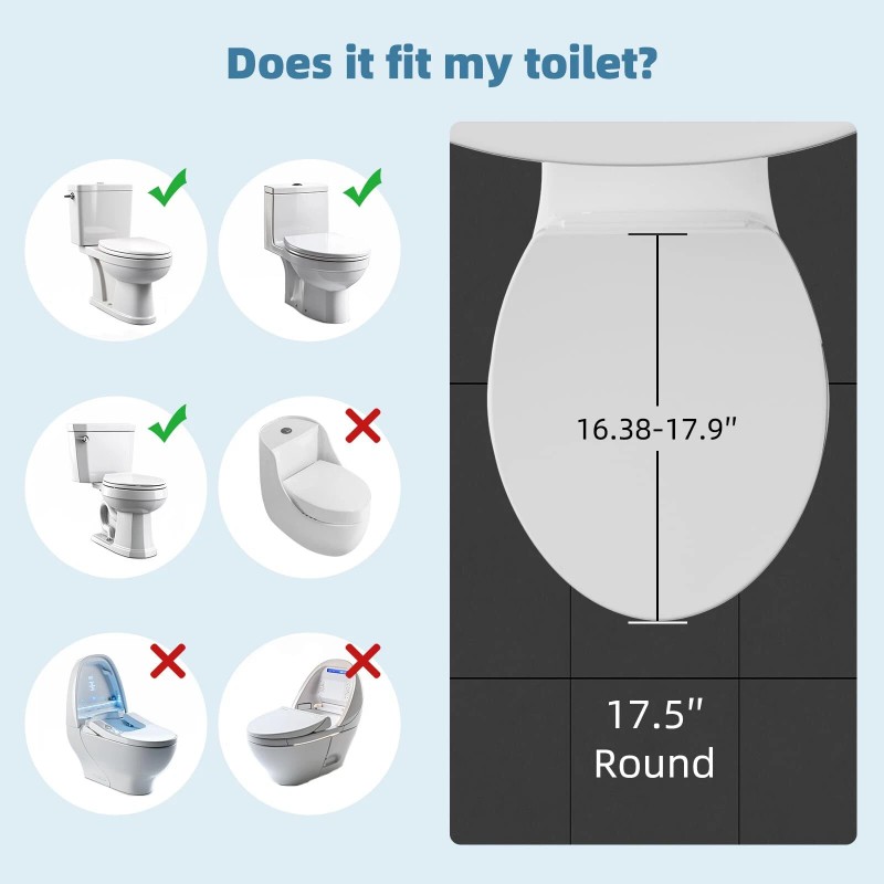 - 【Safe Material & Long-lasting Structure】 Solid toilet seat structure makes it can bear 400 pounds and more. The toilet seat is made of high quality 100% pure(not recycled) polypropylene plastic which is non-absorbent and stain-resistant.