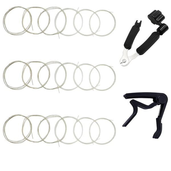 HiBD Classical Guitar Strings Clear Nylon Guitar Strings 3 Complete Sets and 3 in 1 Guitar String Tool Guitar Capo