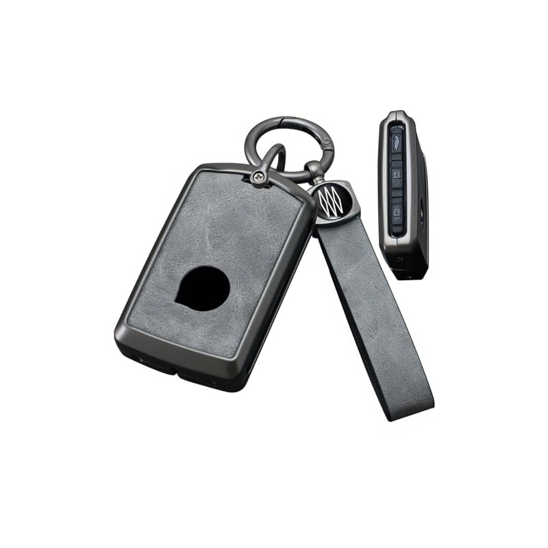 - 【Material & Design】:The smart car key fob for made of high quality Zinc alloy + Smooth leather with grain , fashionable and high-end .Block design and screw two layers of fixed protection