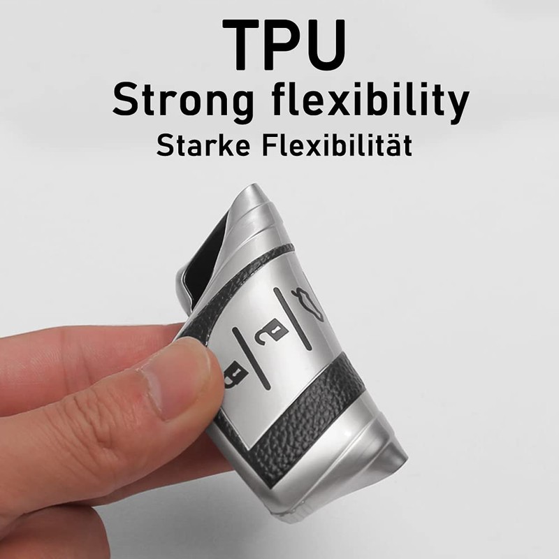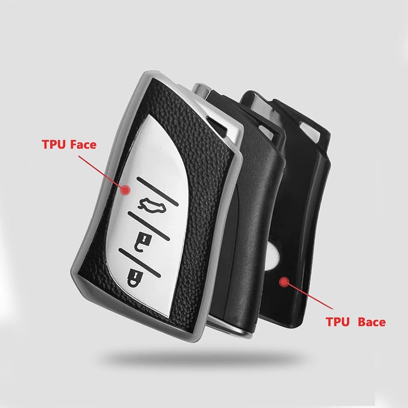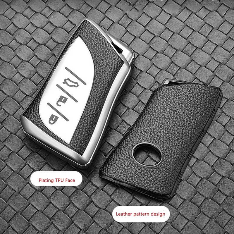 The car key cover is made of a TPU silicone TPU silicone and leather texture, key cover is equipped with a fashionable keychain, innovative design, offer comprehensive protection for your keys.