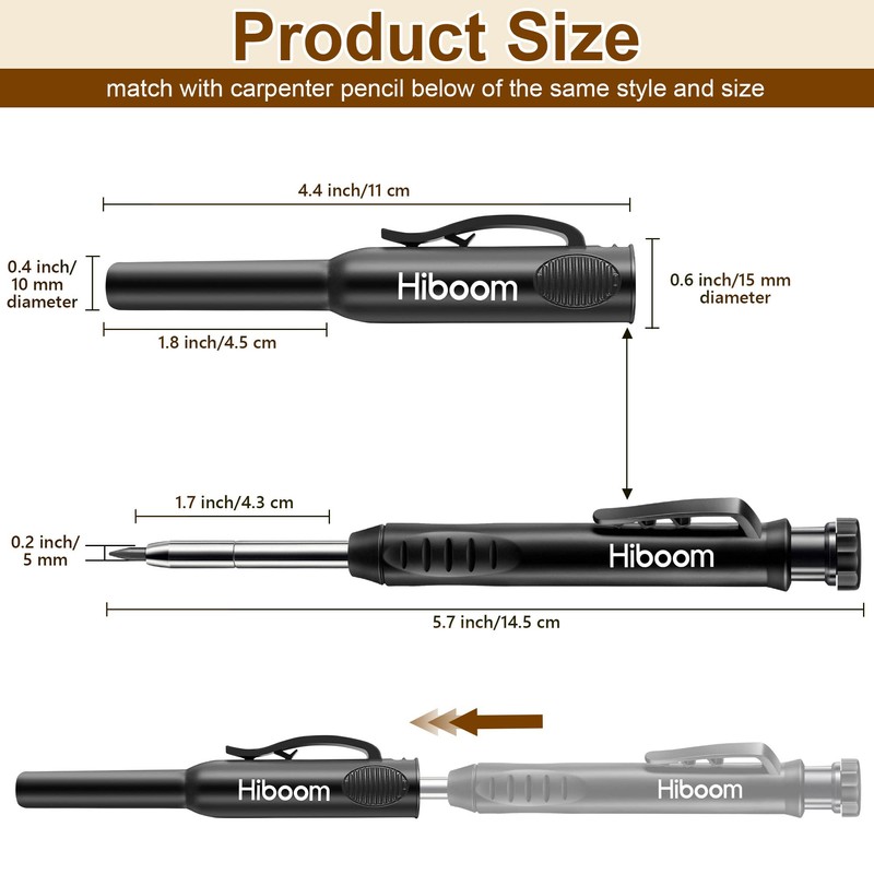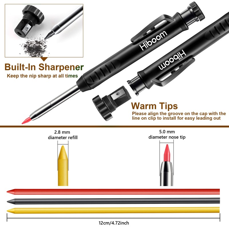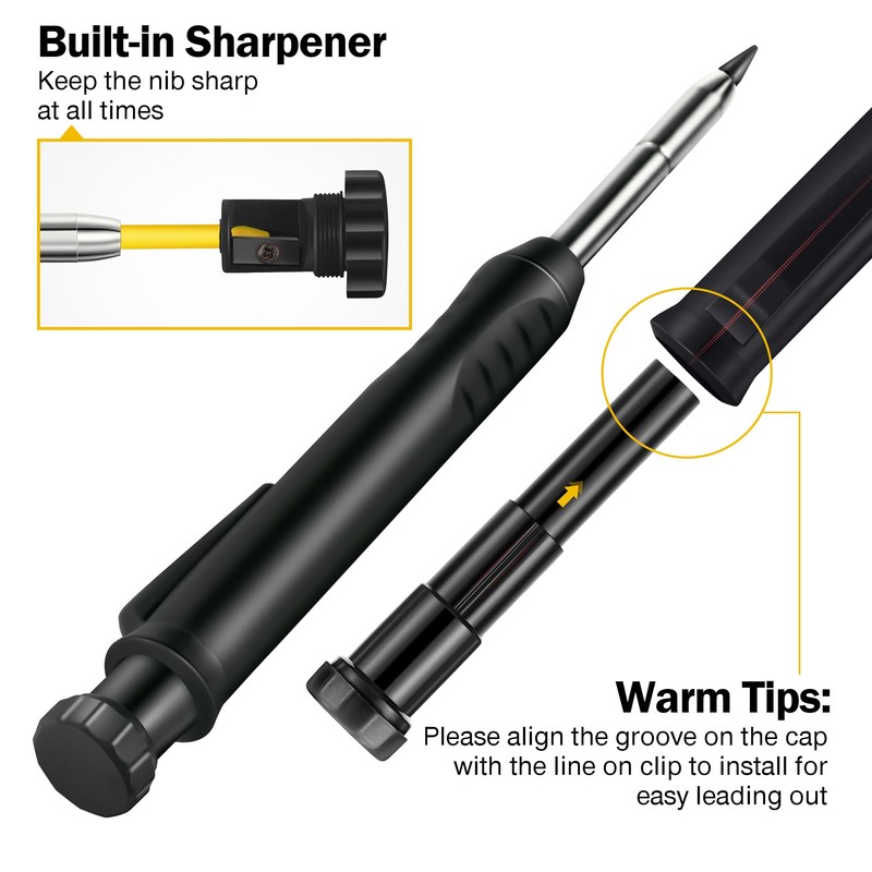 - Built in Sharpener: carpenter pencil top is equipped with mini pencil sharpener; Rotate marking pencil top to take out pencil sharpener, you can sharpen pencil refills anytime
