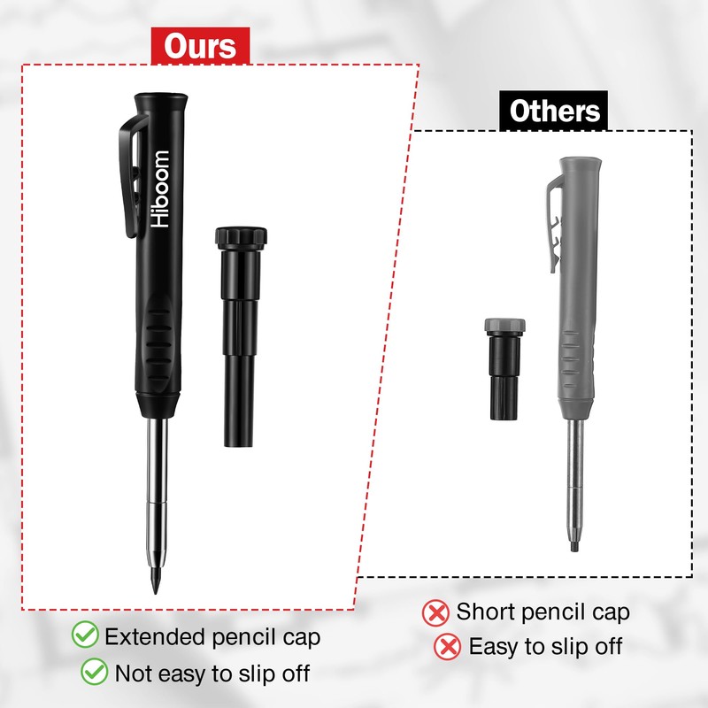 - Pencil Cap to Protect Carpenter Pencil: the solid carpenter pencil cap is a better tool to protect pencil metal part from dust, liquid and rust, making your construction work easier
