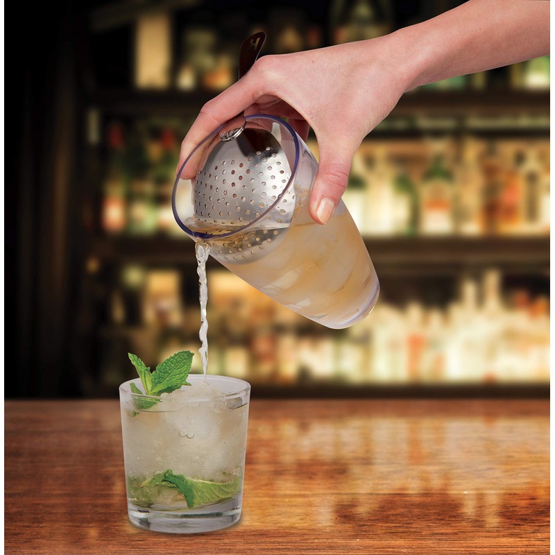 - Pour chilled drinks while keeping ice and muddled herbs, fruits, and spices out of the finished drink; no more watered-down drinks with unwanted bits
