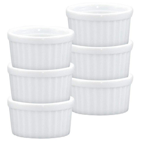 HIC Kitchen Ramekin, Fine Porcelain, For Serving Condiments, Dips, Sauces, And Small Desserts, 2-Ounce Capacity, Set of 6
