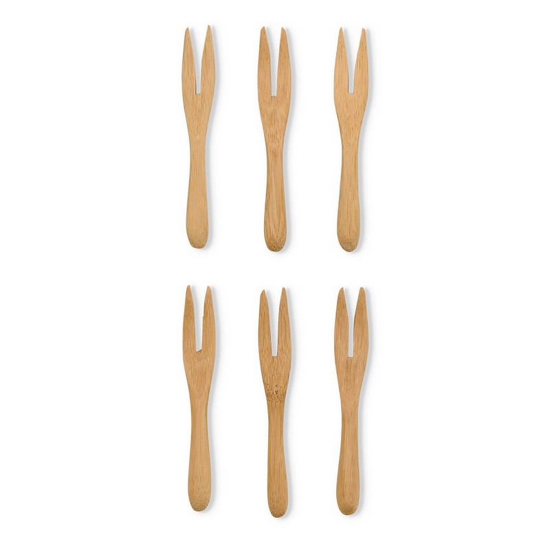 HIC Kitchen Reusable Mini Serving Forks, Burnished Bamboo, Set of 6