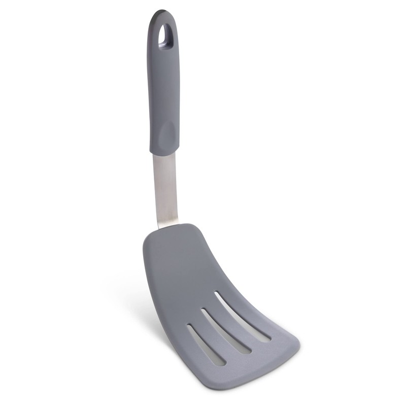 • Easily fold crepes and omelets, flip fish and burgers, scrape pans, and drain fat and cooking liquids for mess-free serving