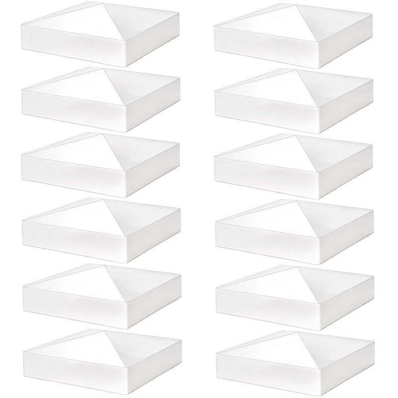 Hiceeden 12 Pack 5" x 5" Vinyl Fence Post Caps, Pyramid PVC Deck Post Caps, Decking Caps for Mailbox, Lamp Post, Deck, Dock, White
