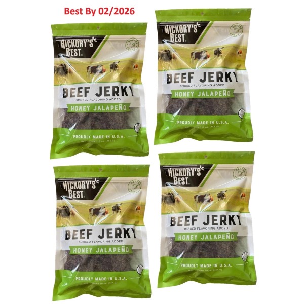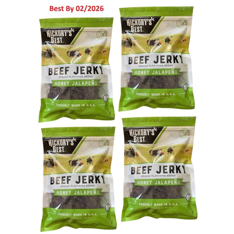 Hickory 4-PACK Hickory's Best Smoked Flavoring Added Honey Jalapeno Beef Jerky 16 oz ea