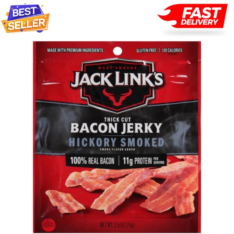 - MADE WITH 100% THICK CUT BACON: Our Jack Link's Bacon Jerky is made of cuts of 100% thick cut bacon. The taste is so great that it makes a great jerky gift for men or women! Great tasting Jack Link's is great for all ages too as a snack or for lunch