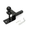 This Multi-Hitch features a 2-inch ball, 1-1/4" shank, ⅝" pin hole, 1/2" hitch pin and a bridge pin. The shank is 6" long.
