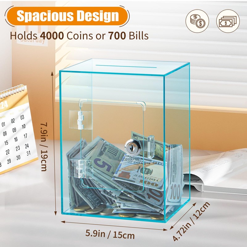 - Durable Acrylic Material: Crafted from high-quality acrylic, this adult piggy bank for real money is both lightweight and shatter-resistant, offering long-lasting use. The premium material ensures it can withstand daily use while maintaining its clear, attractive appearance