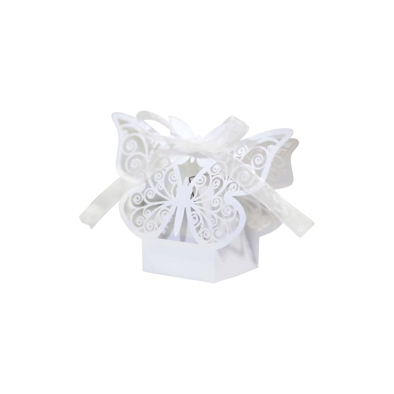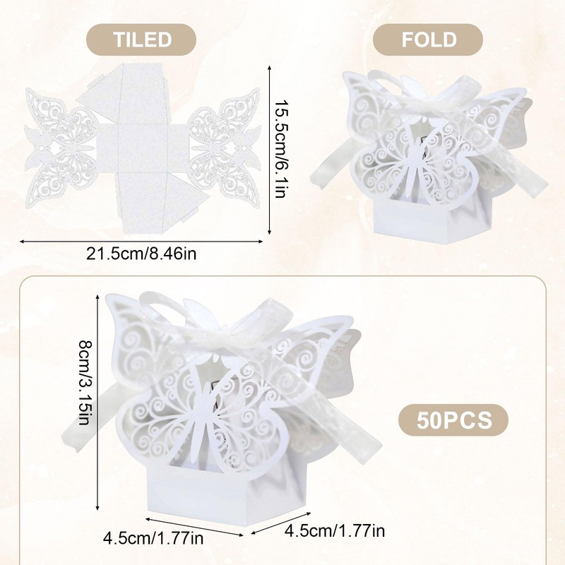 HICOHAND Paper Candy Boxes, 50 PCS Butterfly Laser Cut Favor Boxes DIY Wedding Birthday Gift Candy Boxes with Ribbons