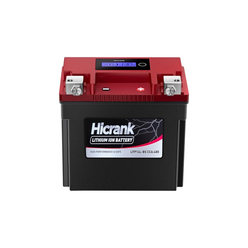 Hicrank YTX14L-BS (GYZ16H) Lithium 12V 8Ah 480CCA LiFePO4 Motorcycle Battery, Powersports Battery