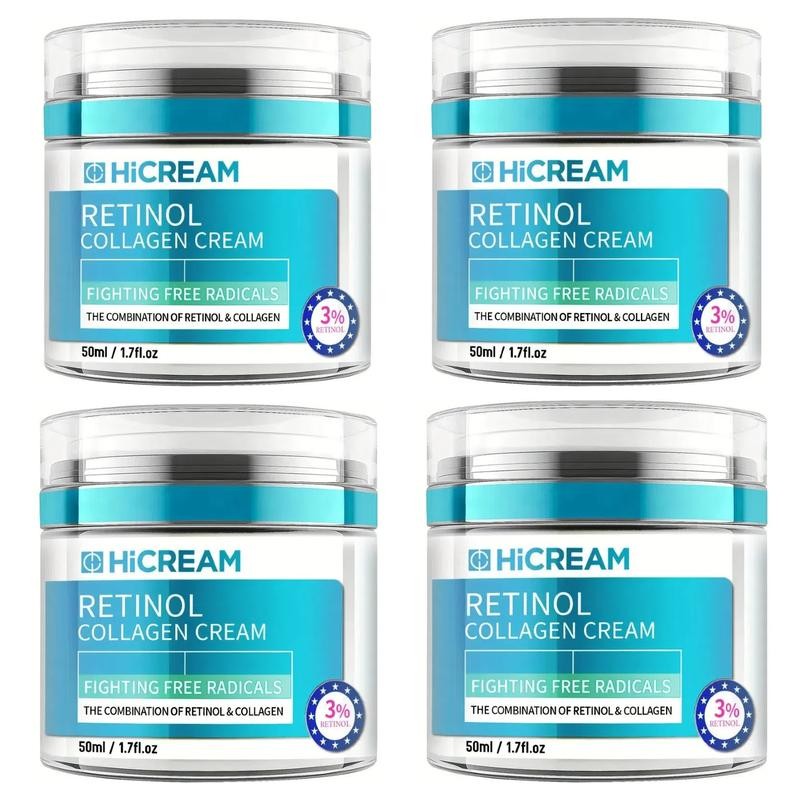 Hicream Face Moisturizer Retinol Cream,Anti Aging Neck Firming Cream,Collagen Face Cream with Hyaluronic Acid,1.7 Fl Oz Hydrate Gentle Skincare - Specification: 4 Counts(200ml)