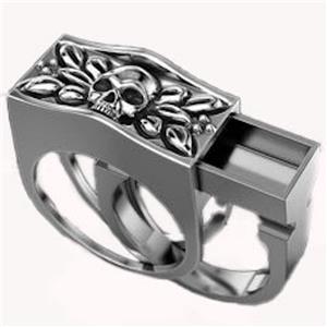 HIDDEN COMPARTMENT VINTAGE SKULL SILVERRING BRX064 mens jewelry stash