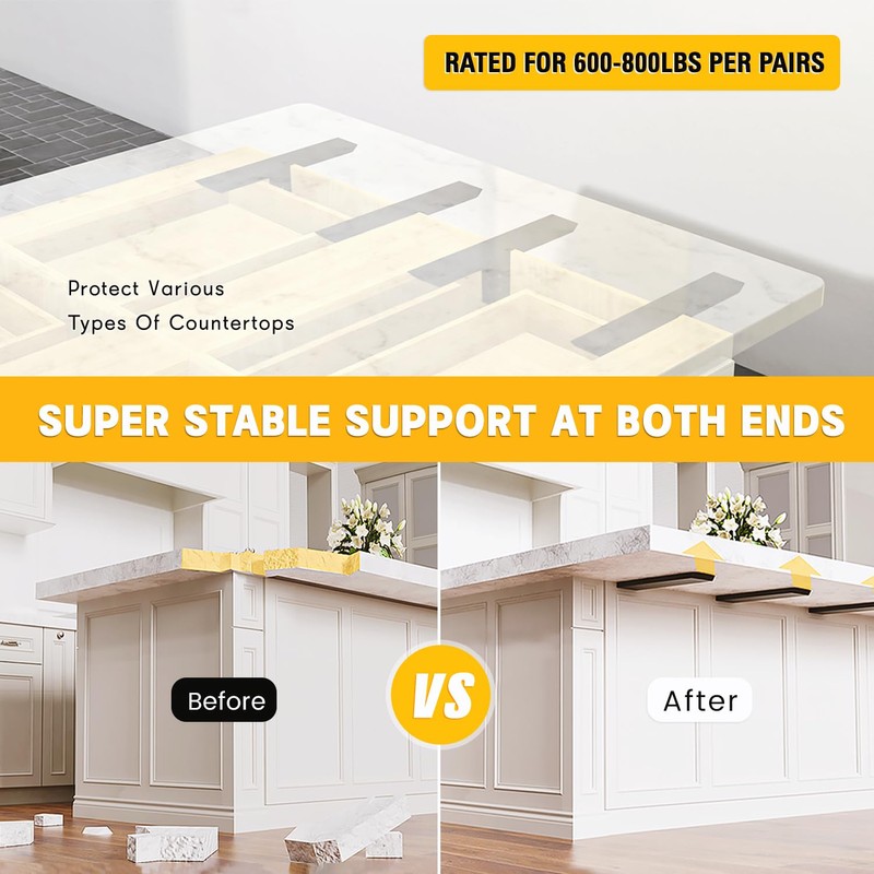 - Thoughtful Dimensions & Functional Design-This island countertop bracket is expertly designed for balance and efficiency, with size options of 16”, 18”, 20”, and 22” to fit various countertop overhangs. Its T-shaped structure offers ideal support while maximizing legroom and storage space underneath. Both two ends of the granite countertop bracket has 45°beveled edge for safty concern. The countersunk screw holes allow flush mounting for a streamlined fit.