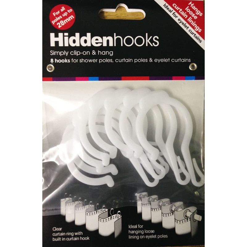 Hidden Curtain Hooks, Add Lining to eyelet curtains, no sewing required, 8 Pack