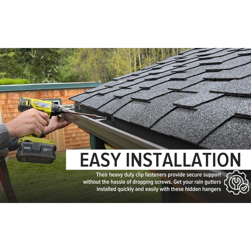 - Cleaner Look Than Gutter Spikes: The hidden gutter hanger with screw provides unmatched support, all while helping to enhance your home's curb appeal; Once installed, each heavy-duty gutter hanger will be out of sight and out of mind