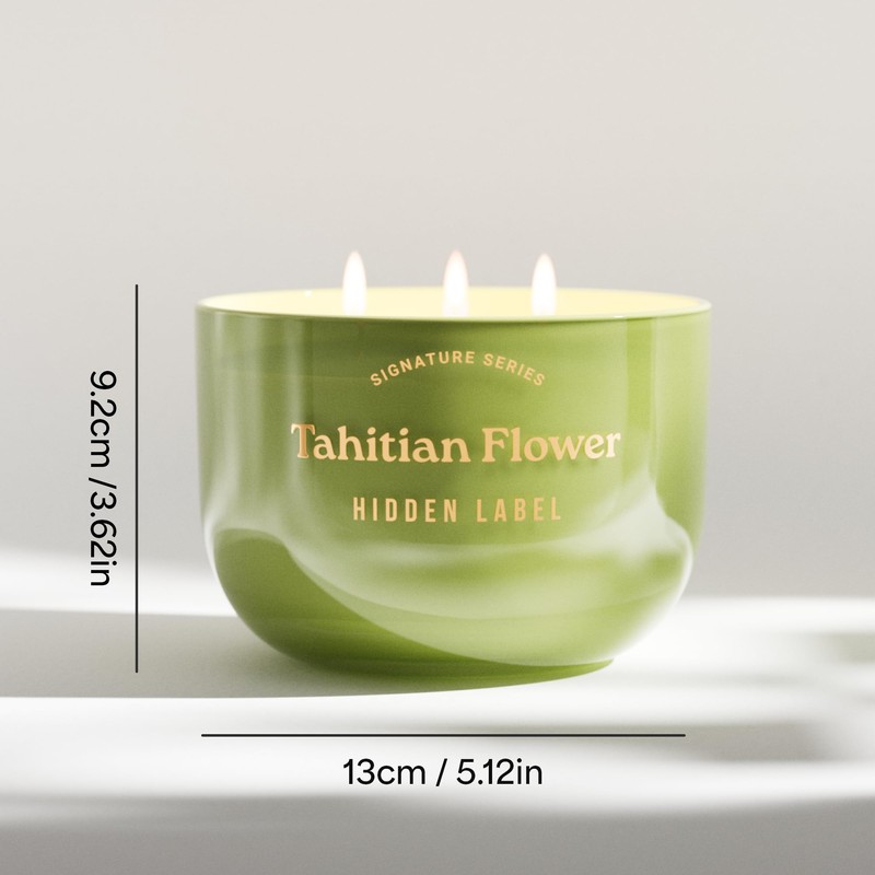 Hidden Label Tahitian Flower Scented Candles,3-Wick Aromatherapy Candle – 18oz, 70-Hour Burn Time, 100% Natural Soy Wax, Luxury Home Scent & Décor for Women and Men