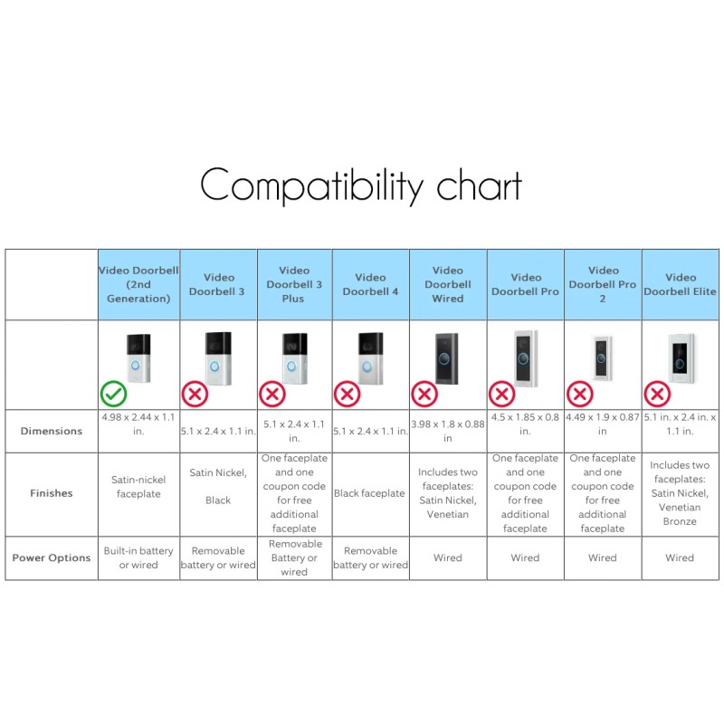 It WILL NOT fit other Ring models. Don't hesitate to send a message with your specifications if you have different doorbell.Important NOTES: Actual color can slightly differ due to lighting conditions and monitor calibration. Screws or doorbell are not included in the listing. Comes with machine screws to secure back plate and face plate together.