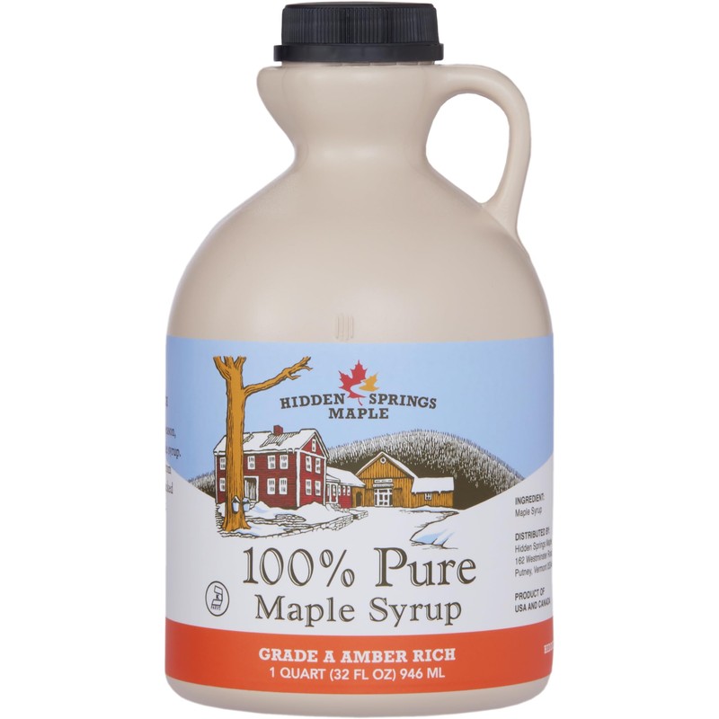 Hidden Springs Maple Amber Rich Quart 100% Pure Maple Syrup USA/CAN, BPA-free Jug
